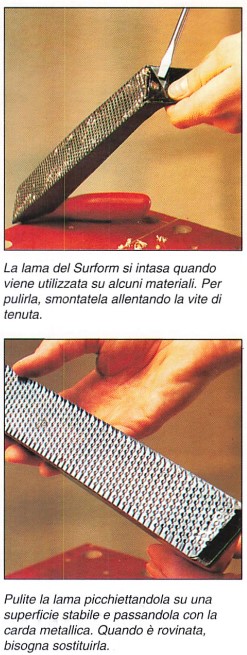 Le pialle lime Surform Stanley consentono di sagomare rapidamente ed efficacemente i materiali più svariati (legno, metalli, multistrato, truciolato, gesso, stucco per carrozzeria). Le lame presentano una serie di punte più o meno fini che si intasano rapidamente su alcuni di questi materiali, ed è quindi necessario pulirle periodicamente, anche quando lavorate. Smontate la lama (trattenuta da una vite sotto il manico) e, per togliere le particelle che otturano i fori, datele semplicemente qualche colpetto su una superficie solida. Utilizzate anche una carda con fili di acciaio, come per le lime.