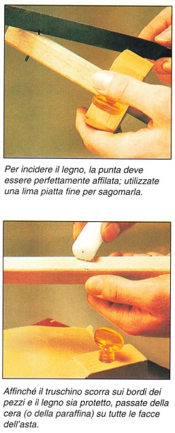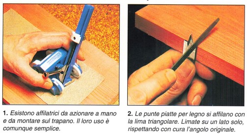 Al contrario, le punte piatte per legno si affilano con la lima triangolare. Si tengono verticali e si lima rispettando l’angolo originale.