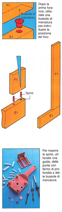 Le tavolette che costituiscono il telaio sono assemblate tramite spine scanalate di 6 x 30 mm; per praticare i fori, utilizzate una punta con fermo di profondità (fori di 17 mm). Incollate, assemblate e serrate.