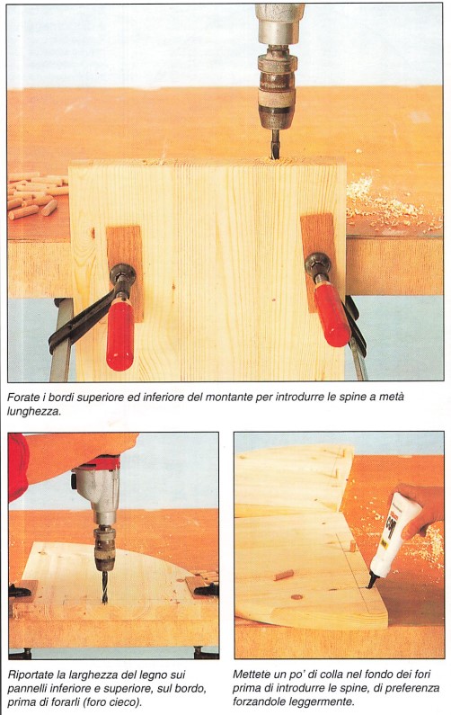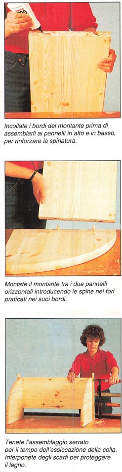 Incollate i bordi del montante prima di assemblarli ai pannelli in alto e in basso, per rinforzare la spinatura.